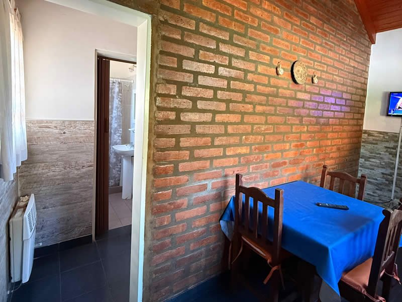 Contamos con 3 cabañas equipadas para 2, 4, y 5 personas con TV por cable, cocina, heladera, vajilla, ventilador de techo, aire acondicionado opcional, calefacción, parrilla, Pileta con solárium y protección perimetral, cocheras cubiertas con tejas para un vehículo por cabaña, asesoramiento turístico.