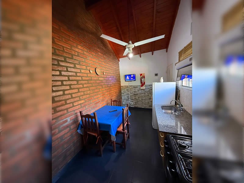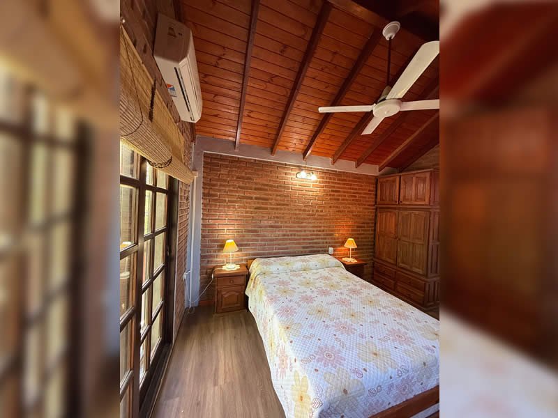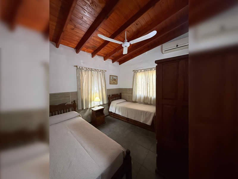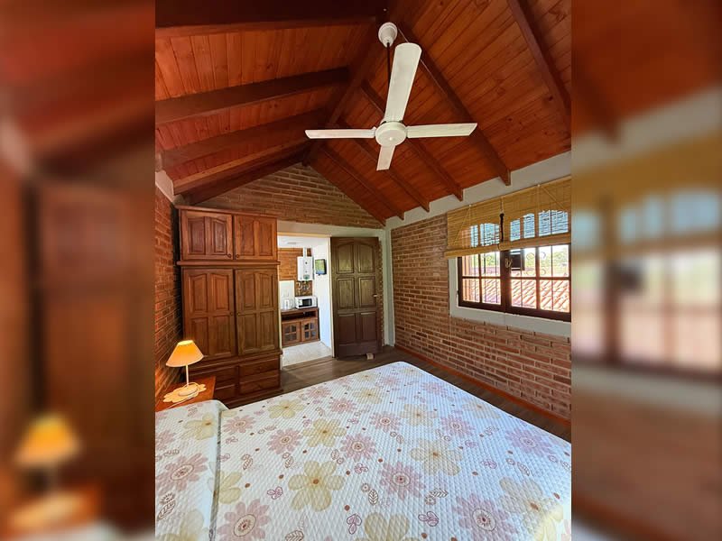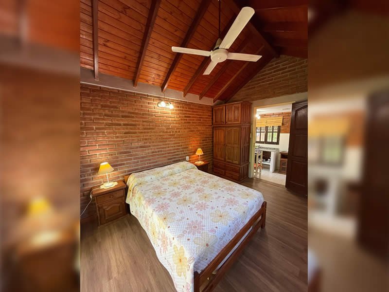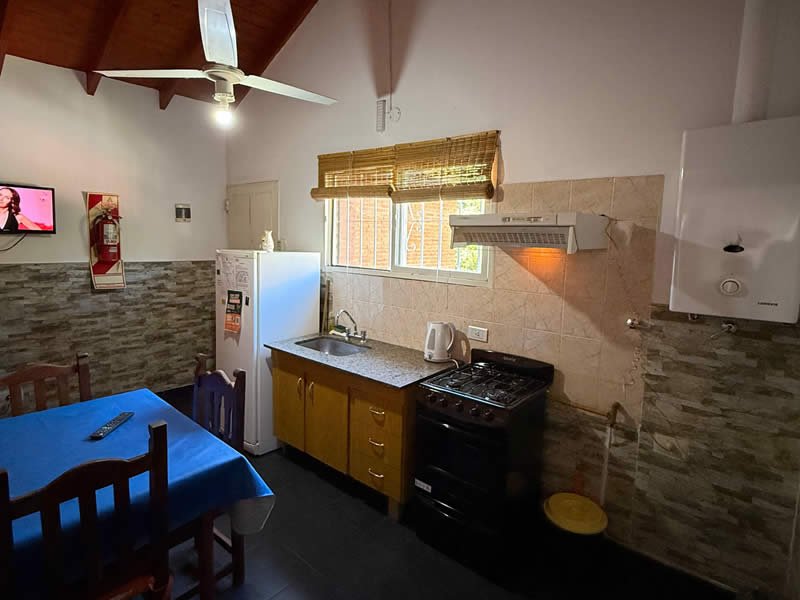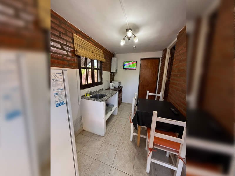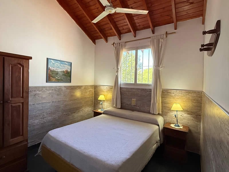 Contamos con 3 cabañas equipadas para 2, 4, y 5 personas con TV por cable, cocina, heladera, vajilla, ventilador de techo, aire acondicionado opcional, calefacción, parrilla, Pileta con solárium y protección perimetral, cocheras cubiertas con tejas para un vehículo por cabaña, asesoramiento turístico.